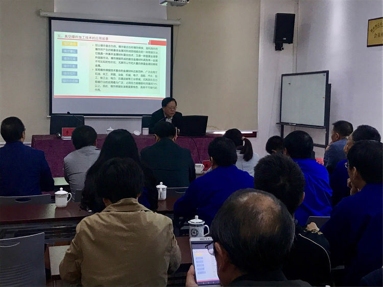 院士在講座上向大家詳細(xì)的介紹了有關(guān)“真空爆炸加工”的相關(guān)知識,董事長李峰對院士的報告表示衷心的感謝。