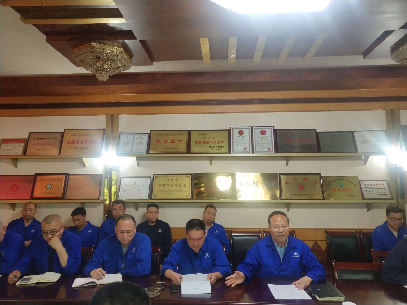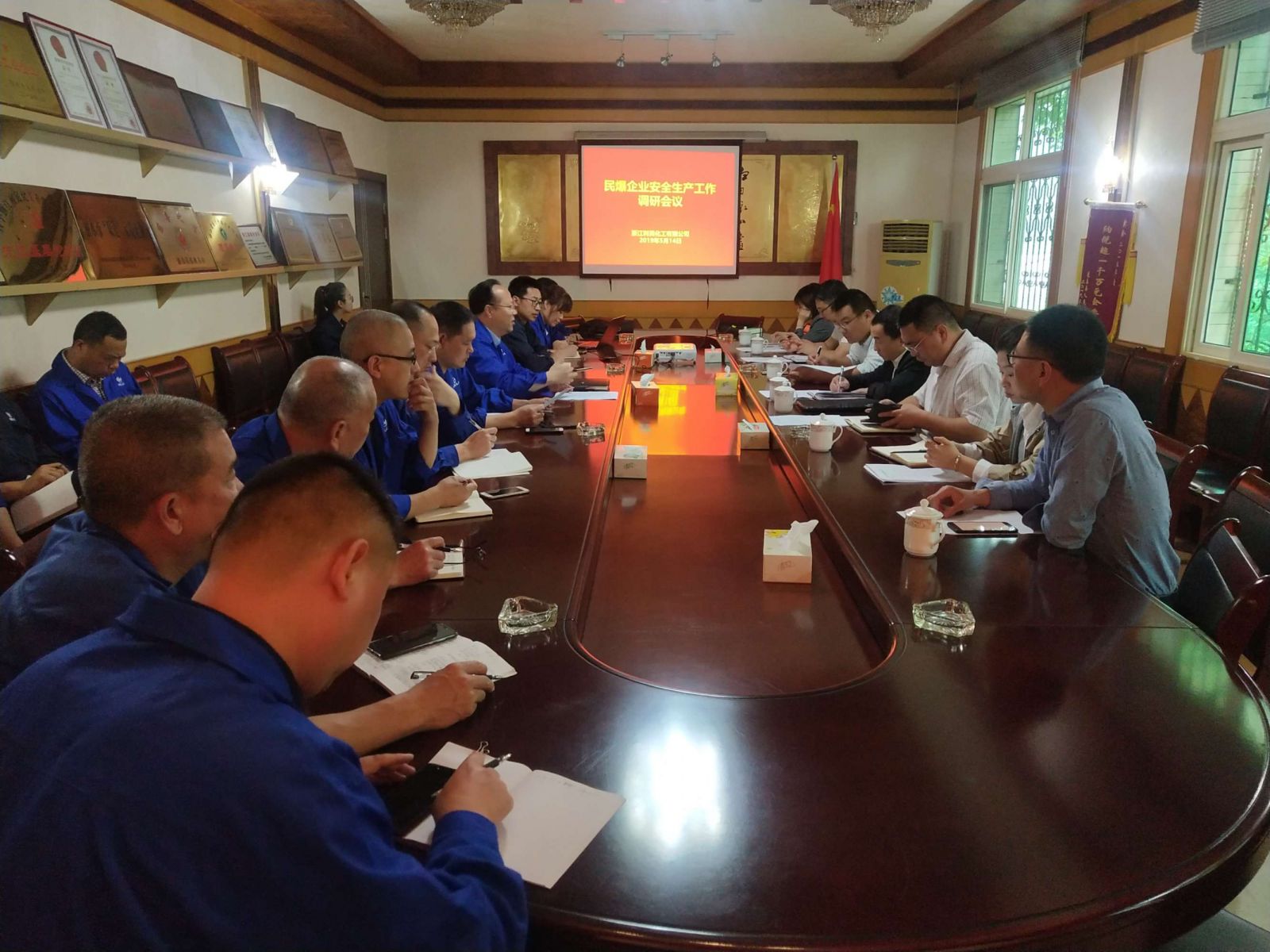 2019年5月14日,麗水市發(fā)改委副主任周立軍攜同縣民爆行業(yè)監(jiān)管部門(mén)到公司調(diào)研安全生產(chǎn)工作,董事長(zhǎng)李峰、總經(jīng)理吳均及公司中層以上干部陪同調(diào)研并參加調(diào)研座談。